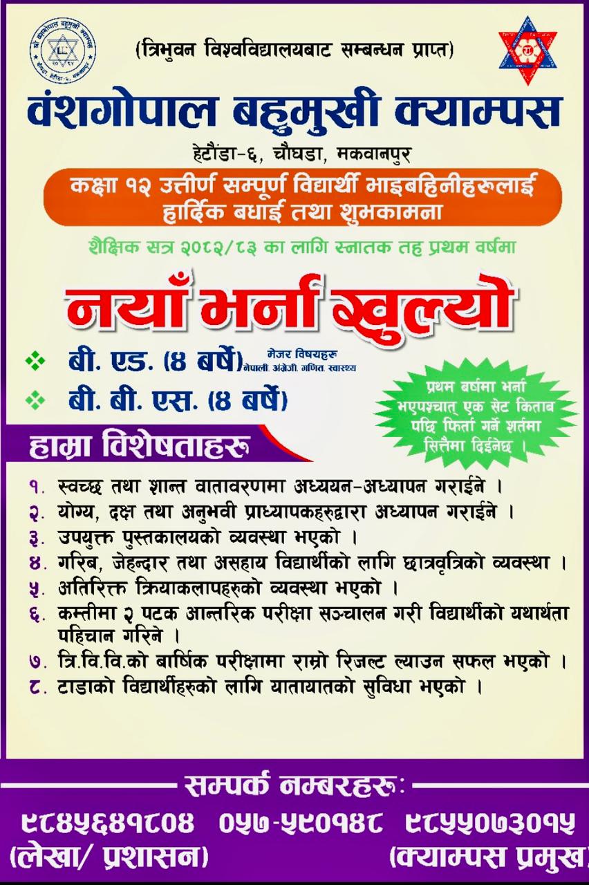 To every student searching for the right place to learn, grow, and build a strong future, I truly believe that Banshagopal Multiple Campus is an excellent choice. It provides quality education, practical exposure, and the right platform for leadership and personal development.
